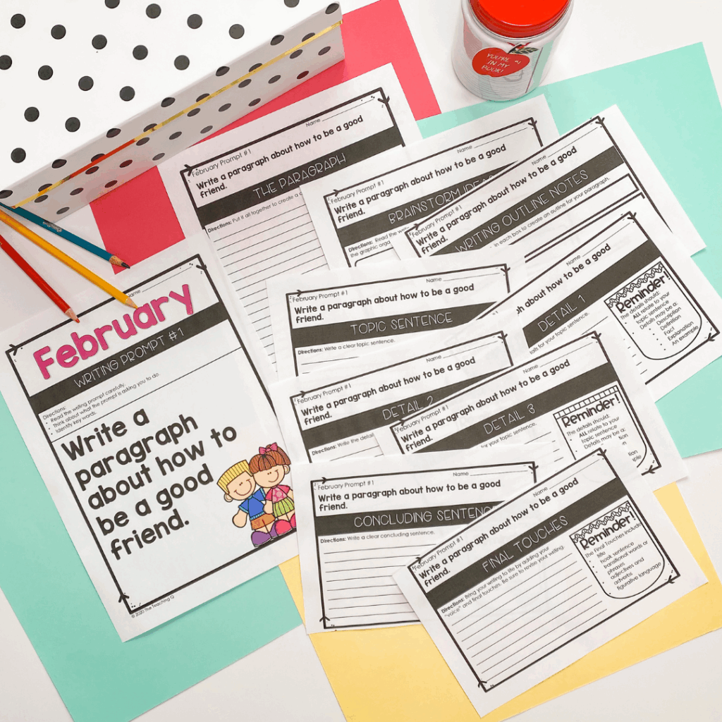 One of the most important steps in teaching writing is clarity. Elementary students often need prompts broken down into manageable pieces. For example, in the resource Paragraph of the Week Writing Prompts, students are guided through each step of writing with carefully structured prompts and directions.